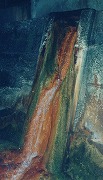 ・薬湯露天風呂 浴槽にこべりついた鉄分が光りを浴びて輝いているのがとても綺麗だ。良好の明礬泉は、少々薄いが久しぶりの物だったのでたっぷりと味わった。