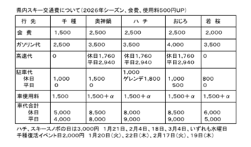 - 🚙💰県内スキーの交通費改定(2026年シーズン、会費500円UP) 📆2026年1月8日(木)配布