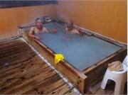 観光センターの前庭には無料の足湯があり、A野君のおごりでアイスを食べながら、30分ほど疲れた体を癒す。サイクリングの後の足湯にアイスはサイコーです。