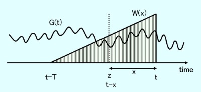 ここまでの式の変換は非常に複雑で,かなりの数学力がないと理解は難しいと思いますが,結論的には,HbA1cは過去T日間の血糖で決定され,血糖の寄与率は一定ではなく,近い過去ほど寄与が大きく,遠い過去ほど寄与が小さいという結論になります.