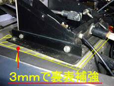 ペダルを強く踏むとBOX前部が持ち上がるため表と裏に3mmプレー トで補強し6mm増しで結構改善されましたが、フルブレーキ時は多少 たわみを感じまだ十分では無い様です。