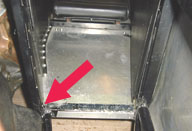 第一話(下へ続きます) 助手席足下延長作業に着手。取り合えず既設のアルミ板を 撤去まで。後の作業で必要になりますので、リベットの穴を広げ ずに慎重に取り外しました。 矢印の部分のリベットがなかなかパイプの中に落とせなかった。 原因はこのフレームパイプが細いため上から落としたリベットがこ こで引っかかって溜まっていた物と思います。下から落としていき ましょう。 |