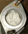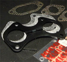 施しました。 インマニのガスケットを用意していなかったので、今回自作を試みよ うと汎用のガスケットを売っている店を探すのにまた一苦労。ガスケッ トの準備をしてからインマニを取り外したかったので、見当で1.5mmを 購入したのですが、分厚すぎて(ノーマル1mm)切り出しに嫁の手と糸 鋸を借りる事に・・・。 左右連結のインシュレーターの効果はまた後日。 |
