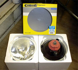 第一話(下へ続く) 長距離ツーリング対策として、シールドビームからH4 バルブを使用出来るライトユニットに変更しました。 まずライトユニットをどうするか。ブランド(ルーカス等)に こだわるか、機能重視でコストダウンをはかるかで悩みま したが、コストを取りシビエのホジション付きを購入(9,800円 ×2)。 |