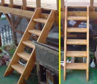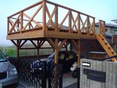 <上の画像が手すり階段関係> 階段は2*8で作成。手すりを今回2*6とし、チョット高級な雰囲気を狙っています。 風が強い立地条件のため、今回フェンスはラティスでは無く2*4の「×」で面積を減らして います。(コストも減りますし) |