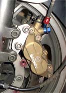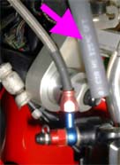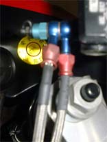 に入りのジョイントをつかってカスタムメイドなホースでスッキリ仕上げが出来ることです。 お値段は、全て新品パーツで組んで、市販品より少し安く上がる程度で す。(特価品には負けますが) 今回私の場合、キャリパーをブレンボに変えた際 、今まで使っていたアンチダイブ用のメッシュホースをバラしてジョイントを再利用し、ホー ス・オリーブのみ購入し組替えましたので、安く出来ました。 ビニールカバー付きホースの場合端末作業でメッシュむき出しの部分が出来ますので、 電気工事用の熱収縮チューブを流用して保護と見栄えのアップをはかっています。 <ちょっと反省> クラッチホースもメッシュに変えたんですが、ノーマルの「金属管+ゴムホース」の方が剛性 感があり良かったかも。何でも変えたら良いってなものでもでも無さそう ですよ。 |