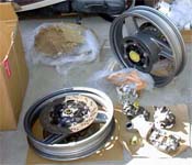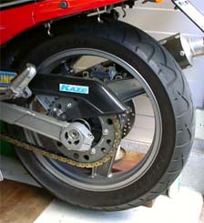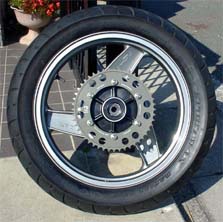 悔の無い選択が出来ました。 1)フロントは、ホイール新同/タイヤ=ダンロップD208ストリート120-70-17ノーマルサイズ中 古8分山/ディスク少々波打9分/残念なのはバランスが悪くウエイト45g 2)リヤは、ホイール新同/タイヤ=ダンロップD207ストリート150-70-18ノーマルサイズ中 古9分山/ディスク良好9分/スプロケisa48T新品 |