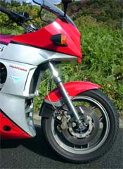 | 5)インプレは全体的に堅くなったのが第一印象。ブレーキは格段に効き ます。320対応のサポートですが、300+ブレンボで十分、て言うか効きす ぎ。まだ2/3程しかパッド当たって無くてもですよ。乗り方変えない とダメですね。 |