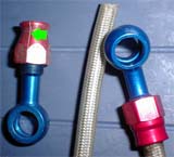 最近ヒビワレが進行しているのを発見し修理を決心。(一枚目の緑矢印) ショップで聞いてもナットのみの購入はダメで、ストレートバンジョー1個が2500円 程します。そこで、オークションで中古のメッシュホースをゲットし、改造する事にし ました。2100円でバンジョー2個とメッシュホースが75cm付いていてとてもリーズナ ブル。 流石にオリーブは新品を150円で購入。今のグットリッジのストレートより長いアー ルズのストレートを使用しますので、メッシュホースは今まで使っていた物を少し詰 めて再使用。グットリッジ+アールズのオリジナルホースとなりました。 |