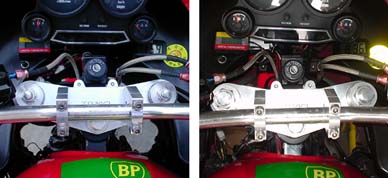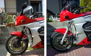ちょっと贅沢とは思いましたが、再度交換しちゃいました。 今回はA9の黒、ノーマルスプリング、イニシャルアジャスター付き、をオークションでゲット。 売却を含め2万円の出費となりました。インナーチューブの状態も良く、前回 の不安材料、稼働部のメッキ剥がれも解消。 おまけに、前回トップキャップをKR1に交換していたのですが、スプリング が堅いので、アジャストをキャンセルしていたのですが、今回はデザインも良く アジャスト機構が使えて、好みの堅さに調整する事が出来、何より黒のボ トムケースでフロントビューが引き締まり、思い切って交換したかいがありまし た。 |