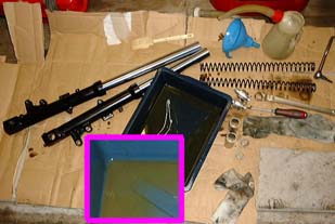 前回のフロントフォークは、たまたまスプリングがWPに交換されていて、始め