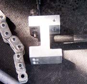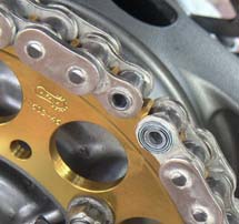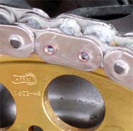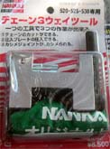 前後のスプロケが決まった所で、新品チェーンを装着。以前のチェーンが悪くなった訳では無いんですが、GPZ900Rはチェーンを切らずに外せるので、このまま誰かに使ってもらえたらとオークションに回し、シルバーメッキ+XOリングのRK/GP530WXと、装着工具の南海チェーン3ウエイツールを購入。 | このツールは、使いやすく簡単に作業を行えました。特にカシメボルトの先端がボールになっているので、均一にカシメ易いのと、画像には有りませんが、付属のカシメゲージでカシメ量を確認出来るので、作業に不安が残りません。