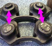 試験走行での感じは、リンク比の変わったリヤが少し心配でしたが、最低限の調整に留めたのが幸いし良い感じ、少し今までより硬く感じますが、乱れる様な事は無く、グリップはタイヤ幅拡大も有りアップし、安心感が有ります。 | トータルハンドリングは、立ちが弱くなり、アプローチの自由度が増した感じ。かと言って直進安定性が損なわれた訳でも無く、17inc化は正解かも知れません。 前回FフォークをA2→A7に変更し、WPのスプリングが硬すぎたので、ノーマルに戻したんですが、今回の変更でFが少し柔らかい感じになりました。 予想はしていたので、今回はオーリンズのスプリングを購入して対応。動きは良くゴツゴツ感は無いんですが、やはり少し硬い。 中古でスプリングのみ購入したので、カラー・OILレベルがノーマルで良いのか調べて調整が必要な状態です。 <追記> ホイール購入時に付いていたホイールダンパーはかなりヘタッテいて、ハブがゴソゴソ状態でした。ホイール変更は試験走行で良い感触でしたので、最終仕上げにダンパーゴムを新品交換しました。 2枚目の→の様に若干仕様変更しており、ハブのホールドがUPしています。3枚目の→の様に元のダンパーはゴムの一部をカットして有りましたが、今回は加工無しで装着。ホイール・ハブ伴に無加工なので、ゴムを加工する必要は有りません。ガタも無くなり、ハブもシッカリホールドされ、安心感倍増です。