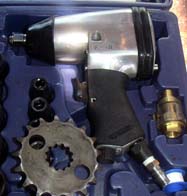 め、一旦古いチェーンを使い、画像のエアーインパクト最大圧で緩めるのですが、5回程10Lのコンプ