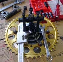 同時に進行していたエンジン積替えが完了し、そのエンジンに付いていたFスプロケを取外すた