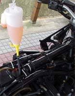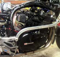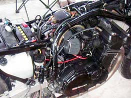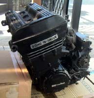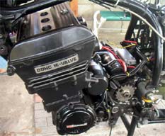けです。 | 中古のフィルターでOILを入れ、ラジエター・外装類を組む前に、今回購入のNEW エンジンを初めて試験的に火入れしてみました。スターターによるクランキングも軽 やかに、キャブのセッティング前の状態でもアイドリングし、ホット一息。 購入後、半年以上倉庫で眠らせていたので心配でしたが、先日慣らし で富士山往復1000kmを走り、初回OIL・フィルター交換ミリテック1を添加し、後は キャブのセッティングのみです。