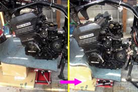 取付は逆の手順で、ジャッキでエンジンを支え、徐徐に上げて行き、エンジン