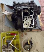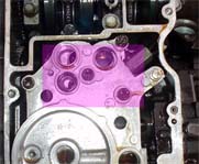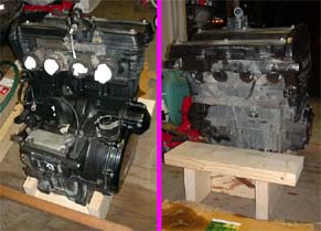 が若返る積替えに決めました。 もう一つ切っ掛けとなったのは、オークションで程度の良さそうなエン ジンがリーズナブルに手に入った事でした。 昨年12月待ちに待ったエンジンが届いたのですが、運搬途中に→の 部分を打って不具合が発生しており、運送会社との交渉に約1ヶ月 作業保留となり、出鼻を挫かれました。 しかし、それ以外は程度の良いエンジンで、このまま作業開始を決 意したのですが、正月が過ぎ、まとまった休みも取れずでやっと ボチボチ作業を開始いたしました。 積替える前に軽くチューニングを予定。先ずはOILポンプをZZR1100用に 交換し、能力UP。バリ取りと経路の研磨で軽くチューニング。 | |||||||