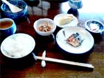 餘部鉄橋の近く、海辺の食堂で、少し贅沢な海鮮定食を。「うんまい!」と舌鼓を打