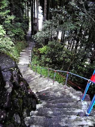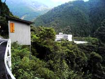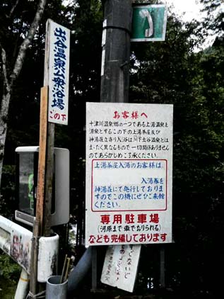 上湯の公衆浴場は川原にある。車3台程の駐車場に883を停め、急な階段を降りる。