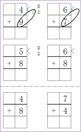 対策…下のような補数を書く欄を設けた用紙で計算練習をさせる。