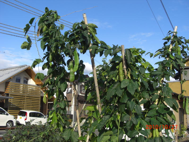 3年前に、元区長の田中さんから、苗をいただき、その後、種を保存し、毎年収穫しています。漢方薬として重宝されていますが、わが家では、さやがまだ柔らかいうちに、ゆでて食しています。味にくせがなくマヨネーズ等をつけると、とてもおいしいです。今年は、刻んでフライパンで炒めてみました。これもいけます。まだまだ料理法の可能性を秘めています。