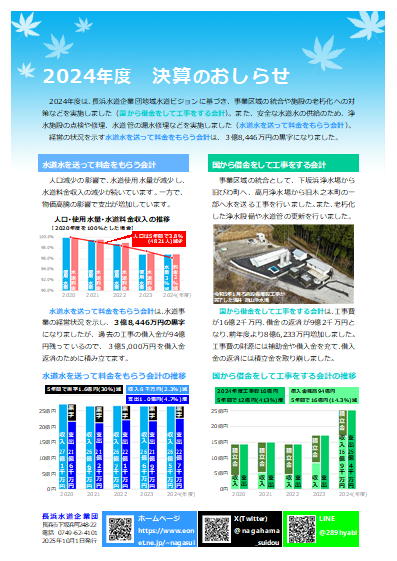2024年度は、長浜水道企業団地域水道ビジョンに基づき、事業区域の統合や施設の老朽化への対策などを実施しました(国から借金をして工事をする会計)。