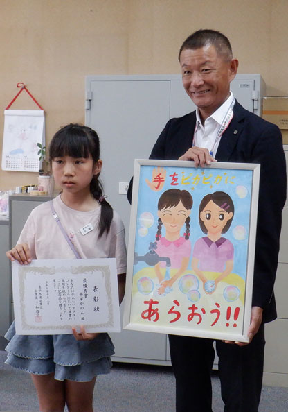 最優秀賞の平塚かのんさん(高月小4年)に表彰状を授与しました!