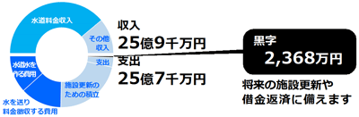 7事業のうち3事業(木之本、余呉木之本、西浅井)で赤字となる見込みですが、企業団全体では、2,367万6千円(前年度予算比:+1,265万6千円、+114.8%)の黒字となる予定です。