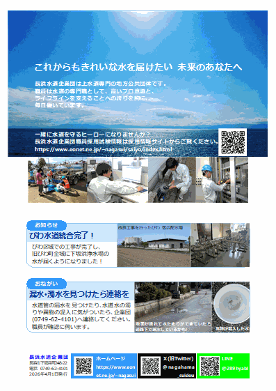 びわ区域での工事が完了し、旧びわ町全域に下坂浜浄水場の水が届くようになりました!