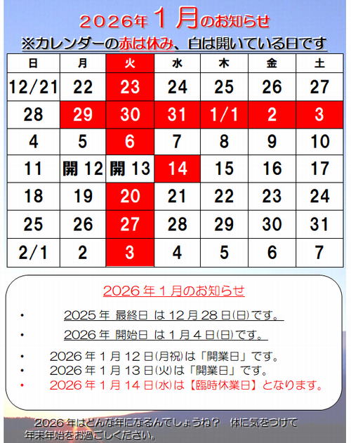 2011年 7月月21日 院内誌のNo.EX1「治療院て何するところ?」をUPしました。 2010年 12月15日 院内誌のNo.4「腰痛もいろいろ膝痛もいろいろ」をUPしました。 2010年 11月20日 ホームページをリニューアルしました。