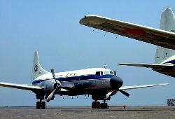 | コンベア440 撮影:戸田保紀氏1965年羽田空港 | バイカウント 撮影:戸田保紀氏1966年羽田空港 |