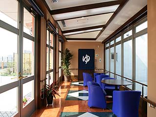 外観デザインはクライアントのテーマ色をベースに、地域の灯台にとの思いと、木製ルーバーで囲んだ外壁と緑地帯によって市街地のオアシスをがんじられるようにした。