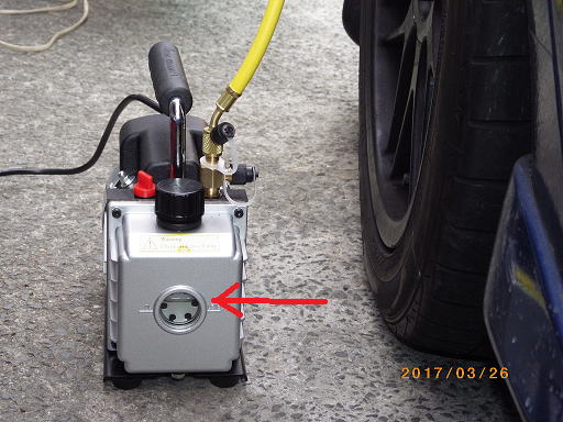 エバポを元通りに車体に組み上げたら、真空引きの開始です。