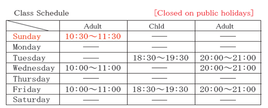 ★Class Schedule (However it is closed on holidays)
