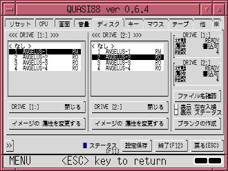 とすれば、QUASI88 の起動後にこのディスクイメージが読み込まれます。