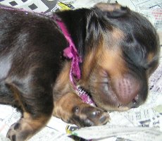7番めに産まれて来たからななちゃんです。4女だよ。産まれた時は200gで今は姉妹の中ではあくびの次に小柄だよ。ななちゃんは小さいけど気が強いです。ママに似たのかな。散歩の時姉妹そろって4匹並んでいくんだけど、私は先頭歩きたいのよね。先にいかれるとワンワン鳴いてSTOPかけまーす。