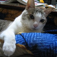 好奇心旺盛、誰とでも仲良くできる。特技は深夜のプーさんとのデート(夜中になると小さいプーさんの人形を咥えてにゃーにゃー泣きながら部屋を歩き回ってる。すごく甘えん坊だよ。