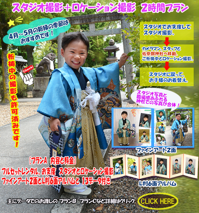 ![]() 詳しくはお問い合わせください。 スタジオ写真とロケーション撮影を合体した アルバムを作成致します。 すばるのお宮参りロケ撮ええとこ!は クリック☛ ![]() すばる七五三ロケ撮ええとこ!は ☛ ![]()