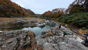 川原にでると岩体があり、