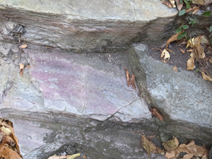 川原におりると、緑泥石片岩と暗褐色の