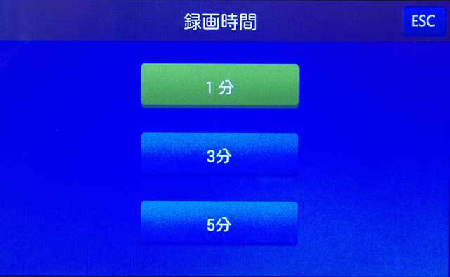 動体検知レベルを高、中、低から、検知録画時間を1分、3分、5分から選択できます。