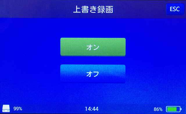 ストレージの容量がいっぱいになった時、自動で古いデータから順に上書きして録画を続けるモードです。 設定は、メインメニューの上書き録画設定で行います。