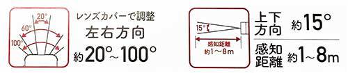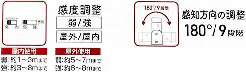 屋外使用 約5m~約8mまで(強弱切り替え 高さ1.5m設置時)