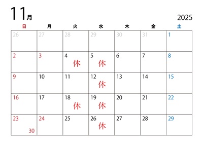 11月営業日のお知らせ2025/10/31