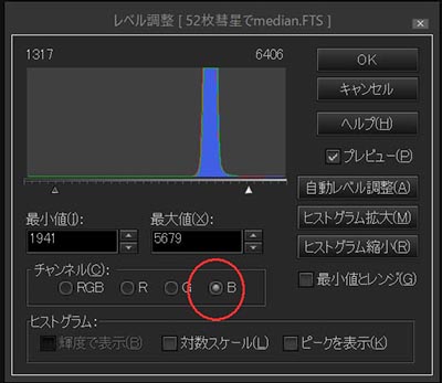 同様にしてGチャンネルとBチャンネルを補正します。RGB別々に補正すると色むらが少なくなります。
