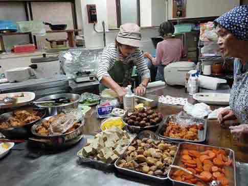 令和6年11月28日(木) 古池食堂 「今日のメニューは、なにをつくるのですか」 「寒いので、子ども達こないかぁ」 「30人分、つくりましょう」 「お米は1升5合でいいよね」 「はーい、ではみなさんお願いします、」 白菜としめじの肉だんご煮、ちんげん菜と豚肉のいため卵とじ、がおいしく、次々と出来上がります。 「味見してー」 「OK」 ごはんも炊き上がり、わかめごはんの元をいれると わかめのいい匂い!! 1階から「子ども7人来ていまーす」と すると、すぐに「20人でーす」 「あと13人こられましたが、全員だいじょうぶですか」と大きな声が聞こえてきます。「ごめん!! おかずがないので、そこでストップして下さい」 そのあと、子どもはこなかったので一安心しました。 ボランティア全員、ひやひやした、子ども食堂でした、今日も無事に終わりました、ありがとう。 |
