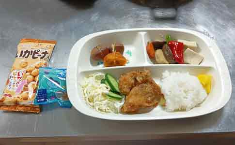 | 令和6年8月22日(木) 古池食堂 今日のメニューは からあげ、サラダ(トマト、タマゴ、かにかま、レタス) ごぼうサラダ、バナナ、おやつ 15時 二人の男の子がやってきました、鬼ごっこをしたり、遊びの部屋のボランティアさんに声をかけたりと、元気な二人です。16時30分頃2階のいぬの部屋に入ってきました、「あつい!!」「熱中症になるから少し体を冷やして休み」ボランティアのおばちゃんが冷たいお茶をわたしながら声をかけます、じっとしていません。「おばちゃん何か手伝うことある」「あるよ、たくさんおやつをいただいたから、このグミを袋に入れてくれる」「わかった、あ! このグミ大好き」笑顔でお手伝いをしてくれました、準備が出来ました、みんなで食べようね、「いただきまーす」 |