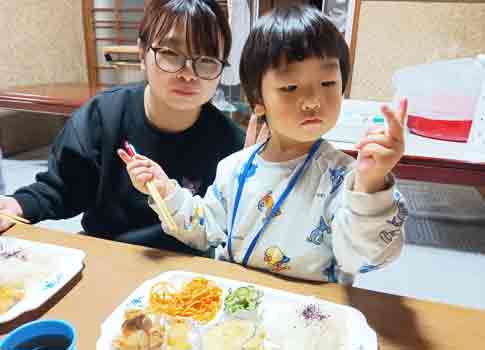 令和6年10月10日(木) 古池食堂 木徳神糧様 こども達に新米有り難うございます。「いつものごはんと違う」と、男の子が大きな声を出しました。「新米のごはんって、おいしいー」と子供達はおおよろこびです、ご支援有り難うございます。 今日のメニユーはごはん、ハンバーグ、かぼちゃ煮、なす、ピーマン煮びたし、ポテトサラダ、ごまどうふ、バナナ、なし、ジユース、おやつ 「いただきます、の前におばちゃんの話聞いてくれる」「今日のごはんは、千葉県産の新米コシヒカリだよ」「元気な、子ども達にと支援してくれたんだよ、よかったね、いっぱいごはんおいしく頂いて、笑顔になろうね」 「はーい、手を合わせて、いただきます」「いただきます」の大きな声が部屋中にひびきます。「ほんまや、ごはんおいしいー、おいしい」「おばちゃん、新米のコシヒカリや」「みんなのために、お米、野菜、果物、おやつ、ジュース等支援してくれたんだよ、ありがとうの感謝の気持ちをもって、残さず、食べようね」「うん、ありがとう」 |