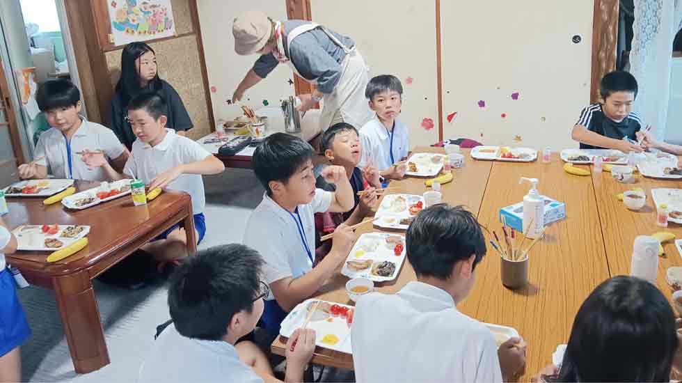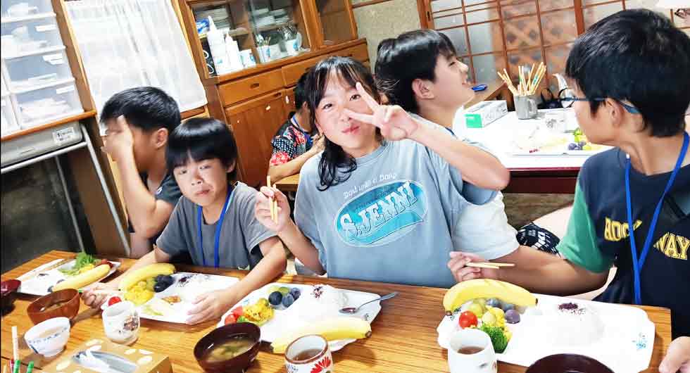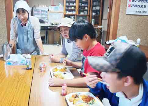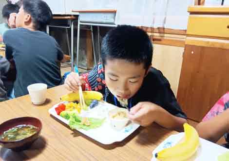 令和7年7月10日(木) 古池食堂 メニュー 五目御飯(災害用) その他お土産たくさん 「暑いよ」 「どうする」 「18名子ども達があがります」 子ども達の熱気でクーラがききません、子ども達はへっちゃら顔で床につき 「今日のメニューなーに?」 「五目御飯 災害用でスイカ・メロンがつくよ」 「お土産にトウモロコシだよ」 「野瀬、若狭野の農家さんからいただいたよ」 みんな手をあわせて 「いただきます、ありがとう」 の元気な声とえがお、 「スイカあまーい、メロンおいしいー」 「メロン食べたかった」 「よかったね、みんなのねがいがかなって」 「おばちゃん食べた」 「あとでいただくね」 「おいしいから味見してよ」 「ありがとう」 やさしい、笑顔のたえない子ども達ばかりです、胸があつくなります、ボランティアさん達もホットしてニコニコ顔です。 |